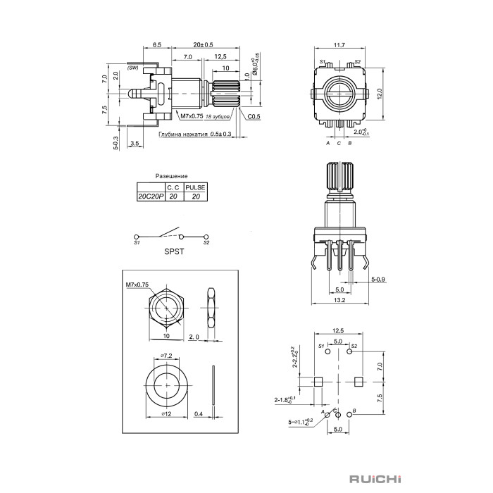 | Разрешение | 20 щелчков, 20 импульсов (20 PPR) |