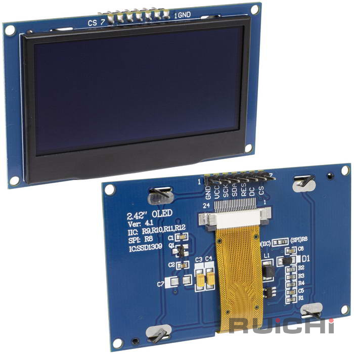 2.42-дюймовый OLED-дисплей модуль RUICHI DSM-OLED-2.42-7P-G с разрешением 128x64 пикселей обеспечивает яркое и чёткое изображение зелёного цвета. Благодаря поддержке интерфейсов SPI и I2C дисплей легко интегрируется в Arduino, STM32 и другие микроконтроллерные платформы. Модуль отличается низким энергопотреблением, высокой контрастностью и отличной читаемостью под разными углами, что делает его отличным выбором для DIY-проектов, портативных устройств и интеллектуальной электроники.