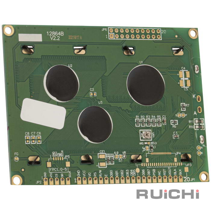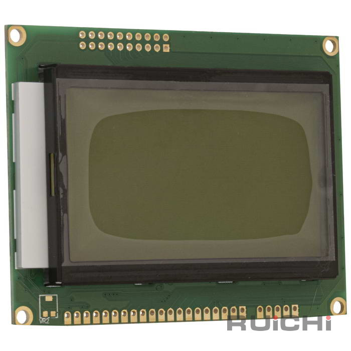 ЖК-индикатор графический RUICHI RG12864C-TNI-это устройство для отображения графической информации в современных цифровых системах. Представляет собой недорогой и удобный прибор для вывода информации и изображений при низком потреблении энергии. Благодаря этому широко применяется при разработке измерительных приборов, медицинского и промышленного оборудования, информационных систем и аппаратуры с автономным питанием. Графический индикатор RUICHI представляют собой матрицу из строк и столбцов, на пересечении которых находятся пиксели. Пиксель представляет собой неделимый объект прямоугольной или круглой формы, обладающий определённым цветом. При подаче на определенный столбец и строку электрического сигнала, пиксель на их пересечении изменит свой цвет. Подавая группу сигналов на столбцы и строки можно формировать по точкам произвольное графическое изображение. ЖКИ RUICHI используtт специальную микросхему - контроллер (драйвер). Он управляет пикселями жидкокристаллического дисплея. Контроллер входит в состав индикатора. В целом ЖКИ RUICHI представляет собой печатную плату, на которой присутствует дисплей, контроллер и необходимые дополнительные электронные компоненты.