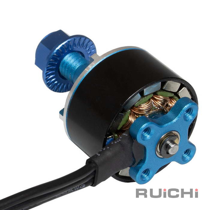 Электродвигатель бесщеточный RUICHI 1408 3600-RH, 3600 kV, диаметр вала с резьбой M5, гайка с прессшайбой, аккумулятор LiPo 2-4S, правое направление резьбы, цвет черный/синий - это BLDC-двигатель, также известный как двигатель с электронной коммутацией, представляющий собой синхронный электродвигатель, использующий источник питания постоянного тока. Бесщеточный двигатель использует электронный контроллер для переключения постоянного тока на обмотки двигателя, создавая магнитные поля, которые эффективно вращаются в пространстве и за которыми следует ротор с постоянным магнитом. Контроллер регулирует фазу и амплитуду импульсов постоянного тока для управления скоростью и крутящим моментом двигателя. Эта система управления является альтернативой механическому коллектору (щеткам), используемому во многих обычных электродвигателях.