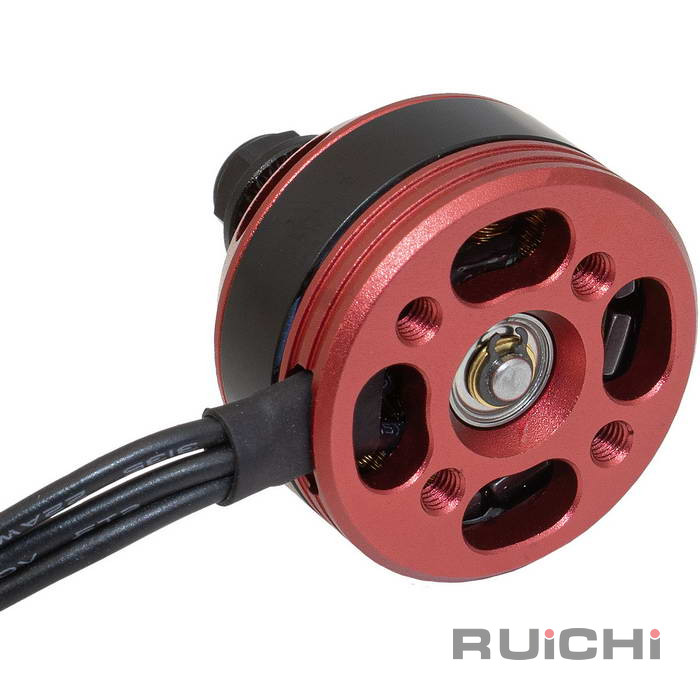 Электродвигатель бесщеточный RUICHI 2205 2600-RH, 2600 kV, диаметр вала с резьбой M5, гайка с прессшайбой, аккумулятор LiPo 2-4S, левое направление резьбы, цвет черный/красный - это BLDC-двигатель, также известный как двигатель с электронной коммутацией, представляющий собой синхронный электродвигатель, использующий источник питания постоянного тока. Бесщеточный двигатель использует электронный контроллер для переключения постоянного тока на обмотки двигателя, создавая магнитные поля, которые эффективно вращаются в пространстве и за которыми следует ротор с постоянным магнитом. Контроллер регулирует фазу и амплитуду импульсов постоянного тока для управления скоростью и крутящим моментом двигателя. Эта система управления является альтернативой механическому коллектору (щеткам), используемому во многих обычных электродвигателях.