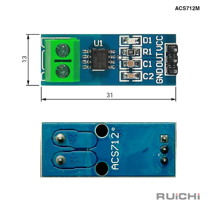 ACS712M RUICHI, Датчик тока с гальванической развязкой 5А