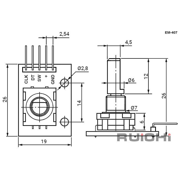 Энкодер RUICHI EM-407 - это конструктивно и функционально законченное радиоэлектронное устройство или радиоэлектронный функциональный узел, выполненный в модульном или магистрально-модульном исполнении с обеспечением конструктивной, электрической, информационной совместимости и взаимозаменяемости.