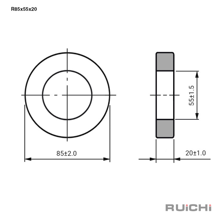 Диаметр, мм | внешний (А) - 85 ; внутренний (B) - 55 |