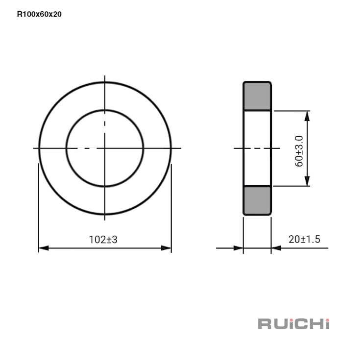 | Диаметр, мм | внешний (А) - 102±3 ; внутренний (B) - 60±0.3 |