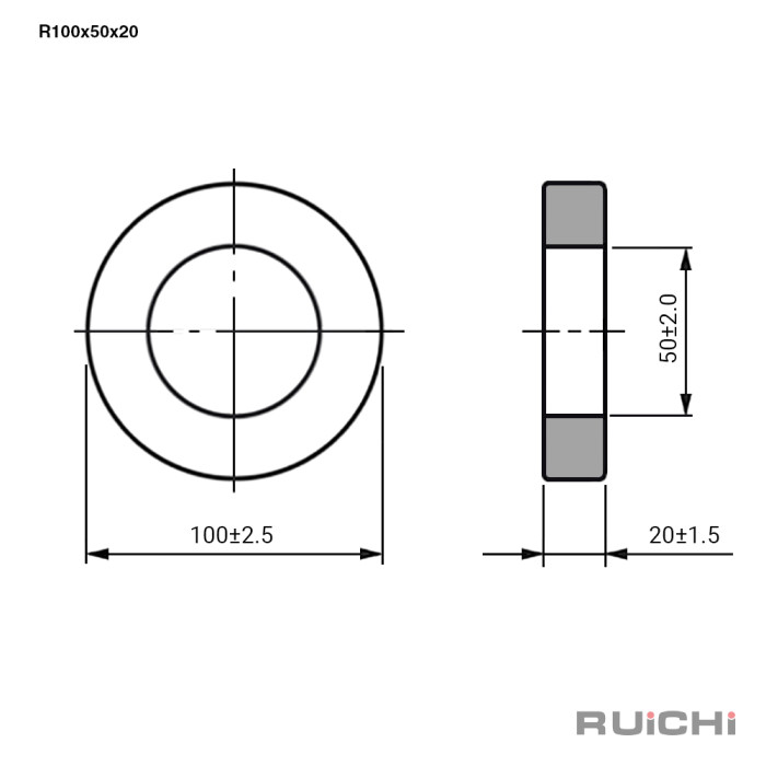 Диаметр, мм | внешний (А) - 100±1 ; внутренний (B) - 50±0.3 |