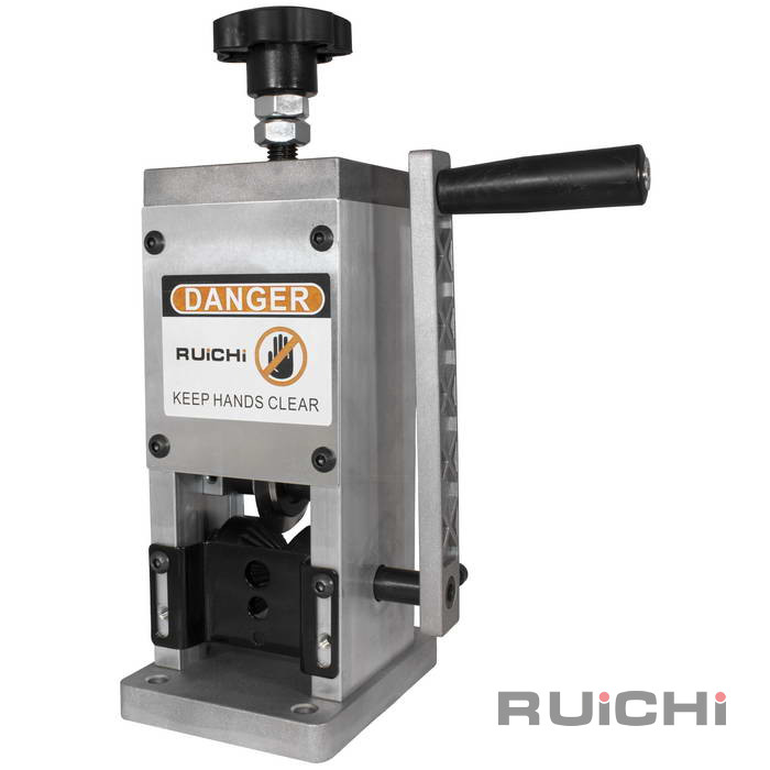 Ручной станок для разделки кабеля RUICHI R-025 предназначен для разделки кабеля диаметром от 1 до 30 мм, преимущественно подходит для ПВХ изоляции, резины, а также СИП-кабеля. Конструкция полностью разборная, станок оснащен одним мощным сменным ножом под подшипник. Диаметр подачи кабеля регулируется путем поднятия ножа над валом при помощи регулировочного вентиля сверху. Есть возможность подключения электрической дрели для повышения производительности. Удобная, переносная конструкция не требующая подключения к электричеству. Станок может эксплуатироваться в любых условиях.