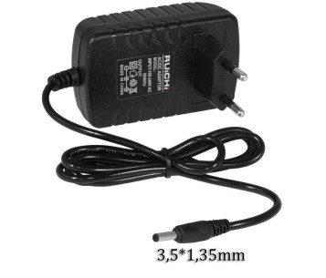 Импульсный блок питания RUICHI А003, 100-240 В (AC), 50 Гц, 2 А, 6 В, штырьковый разъем 3.5х1.35 мм, 0…+40 °С, корпус из поликарбоната, провод ПВХ черный