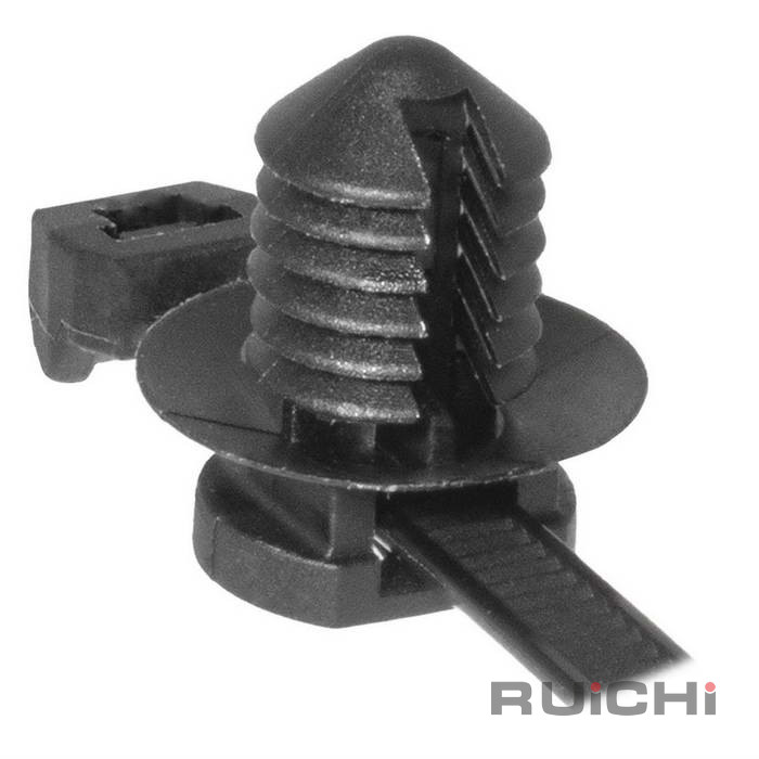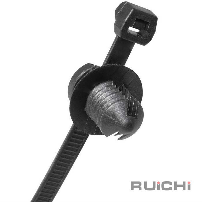 Кабельная стяжка с крепежной клипсой RUICHI, установочное отверстие 8.5 мм, 150х4.7 мм, охват 30 мм, PA66, цвет черный является разновидностью профессионального крепежа, специально созданная для оперативной фиксации кабелей и проводов, а также используется для комплексной организации кабельных систем и для эффективного проведения любых электромонтажных работ.