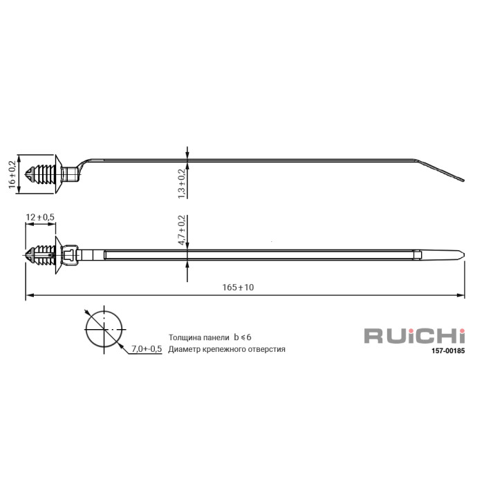 Кабельная стяжка с крепежной клипсой RUICHI, установочное отверстие 7 мм, 166.3х4.7 мм, охват 30 мм, PA66, цвет черный является разновидностью профессионального крепежа, специально созданная для оперативной фиксации кабелей и проводов, а также используется для комплексной организации кабельных систем и для эффективного проведения любых электромонтажных работ.