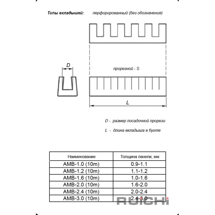 Сдвижной вкладыш перфорированный RUICHI AMB-4.0, ширина прорези 4 мм, длина 10 м используется для защиты провода от повреждений и обрамления острых краев металла и пр. Превосходная изоляция, гибкость, защита от царапин, не портятся со временем.