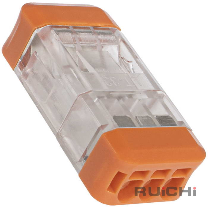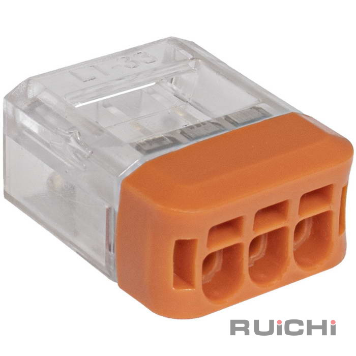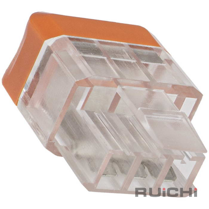 Клемма зажимная соединительная проходная безвинтовая RUICHI СМК 227G-3P, 3-проводная, 24 А, 250 В, 0,08...4 мм2, -40…+105 °C, PA66, UL94V-2/UL94V-0