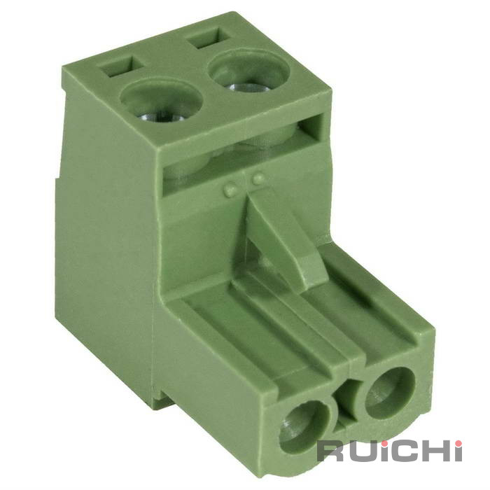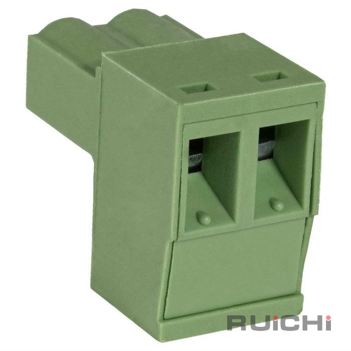 Клеммник разъемный винтовой прямой, розетка (F) RUICHI XY2500F-A-02P, 2 контакта с шагом 5,0 мм, 12 А, 28-12 AWG, 2,5 мм?, PA66 – это конструкции, состоящие из 2-х частей. Одна из которых крепится на плате, а вторая – непсредственно на кабеле. Для соединения подвижная часть клеммника вставляется в неподвижную и фиксируется зажимной пластиной.