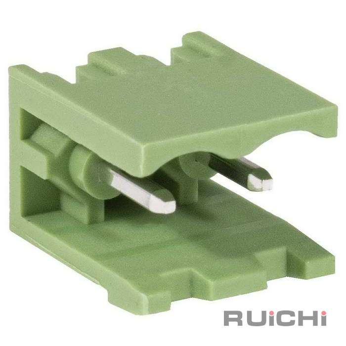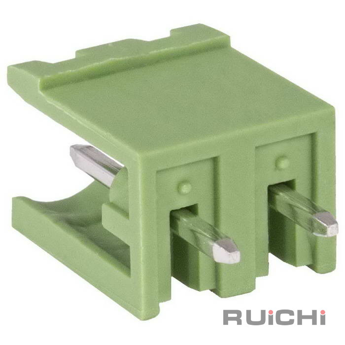 Клеммник разъемный прямой, вилка (M) RUICHI XY2500V-A-02P, 2 контакта с шагом 5,0 мм, 12 А, 2,5 мм?, -40…+100 °С, PA66 – это конструкции, состоящие из 2-х частей. Одна из которых крепится на плате, а вторая – непсредственно на кабеле. Для соединения подвижная часть клеммника вставляется в неподвижную и фиксируется зажимной пластиной.