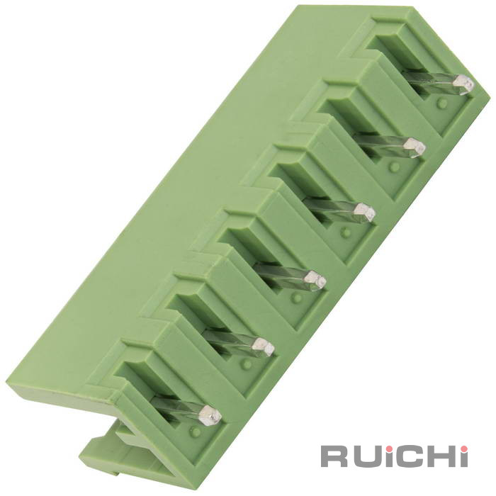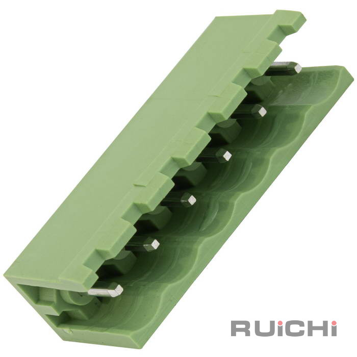Разъемный клеммный блок на кабель RUICHI 2ERGV-5.0-06P, розетка (F), 6 контактов, шаг 5.00 мм – это конструкции, состоящие из 2-х, или более частей. В большинстве случаев, одна из которых крепится на плате, а вторая на кабеле. Для соединения подвижная часть клеммника вставляется в неподвижную и фиксируется зажимной пластиной.