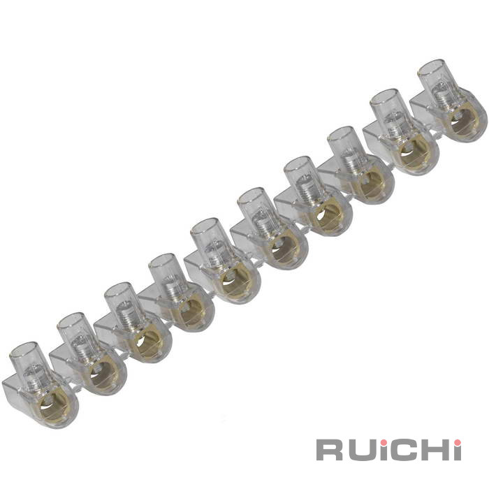 Концевой зажим винтовой изолированный RUICHI КВ-1-20 для проводов сечением 25 мм2, номинальный ток 17 А, (10 клемм) предназначен для электрического и механического соединения медных или алюминиевых проводников сечением 25 мм2 в электрической цепи напряжением до 450 В. В каждом зажиме можно зафиксировать по 2 проводника номинального сечения. Применяется для разводки силовых цепей в распределительных коробках и кабельных каналах. Материал контакта – латунь. Материал корпуса – нейлон. Материал винтов – оцинкованная сталь.