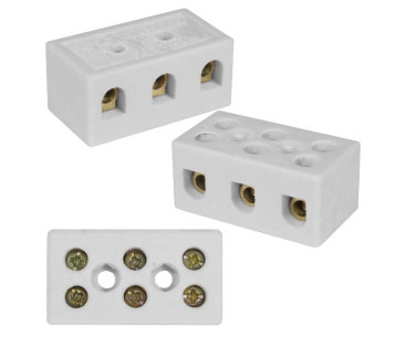 Клемма винтовая керамическая RUICHI КВК-3-10, для проводов сечением 3 мм2, 3x2 контакта, 600 В, 10 А, -40...+450 °C, белая предназначена для соединения проводов, которые могут находиться под воздействием высоких температур. Изготовлена из качественного изоляционного материала, который обладает высокой стойкостью на пробой даже при воздействии влаги, устойчив к токам поверхностной утечки, не подвержена горению.