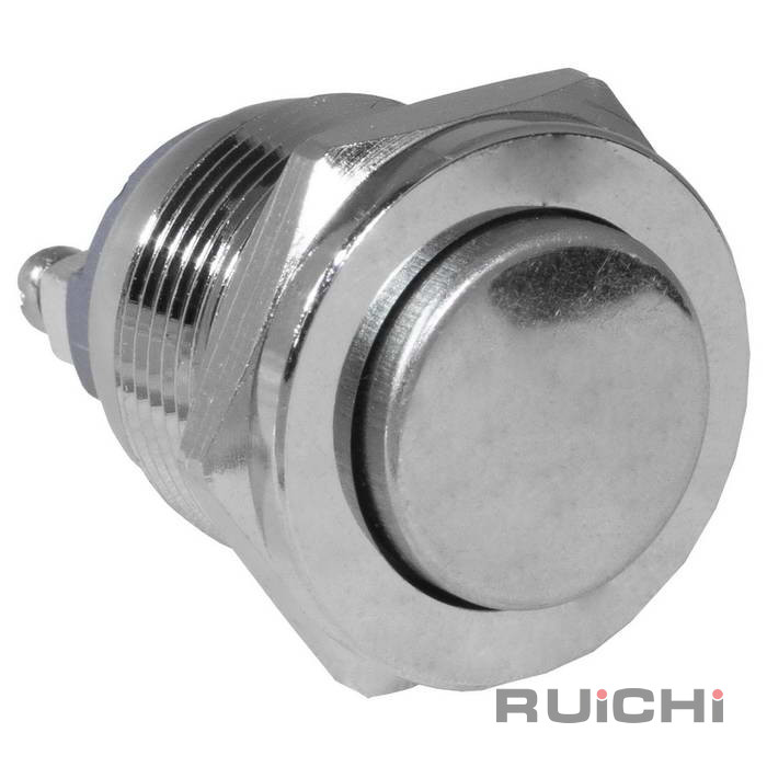 Кнопка антивандальная RUICHI GQ19PH-10/N, OFF-(ON), рабочая температура -25…+55 °C, никелированная латунь максимально долговечна и надежна. Устройство способно безотказно работать при частой эксплуатации и самых тяжелых условиях. Именно поэтому такие кнопки устанавливаются в тех местах, где существует повышенный риск повреждения, например, на производственных предприятиях или объектах с большой проходимостью людей. Антивандальные кнопки часто можно встретить в лифтах, около входных дверей зданий или метрополитене.
