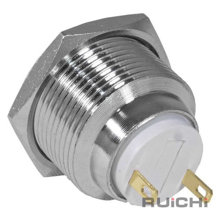 Кнопка антивандальная RUICHI GQ19SF-10Z/J/N, OFF-ON, рабочая температура -25…+55 °C, никелированная латунь максимально долговечна и надежна. Устройство способно безотказно работать при частой эксплуатации и самых тяжелых условиях. Именно поэтому такие кнопки устанавливаются в тех местах, где существует повышенный риск повреждения, например, на производственных предприятиях или объектах с большой проходимостью людей. Антивандальные кнопки часто можно встретить в лифтах, около входных дверей зданий или метрополитене.