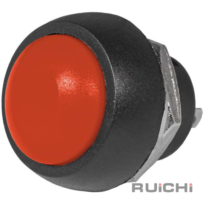 Кнопочный переключатель RUICHI PBS-33B, OFF-(ON), красный – это коммутационное устройство с механизмом нажимного действия и обратным приводом, которое предназначено для размыкания и замыкания электрической цепи.