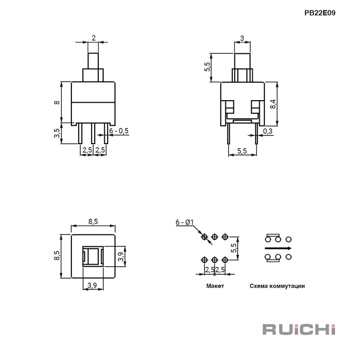 | Тип | Кнопка миниатюрная серии PB22 |