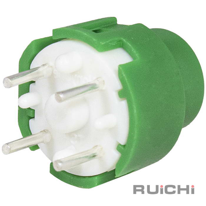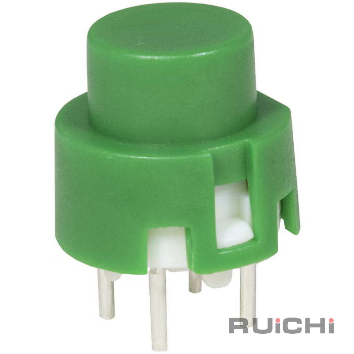Миниатюрная кнопка без фиксации RUICHI TS4-2GN-0, 4 контакта, корпус зеленый круглый, кнопка зеленая цилиндрическая – это изделие модульной конструкции, которое используется для создания устройств коммутирования электрических цепей или других сигналов.