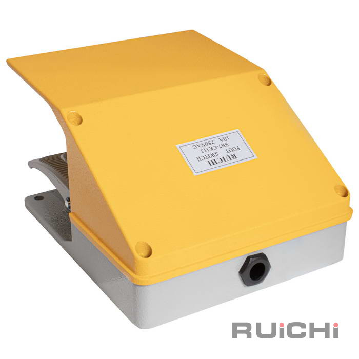 Переключатель ножной педальный RUICHI SB7-CK113, номинальное напряжение 250 В, ток 10 А, с защитой для ног - представляет собой устройство для управления сложной техникой или устройствами, которые требуют настройки обеими руками, или ручное управление невозможно или неудобно. При выборе педали следует учитывать сразу несколько факторов, однако, особое внимание необходимо уделить безопасности, особенно, если речь идёт о производственных агрегатах. Модель SB7-CK113 обладает нескользящей поверхностью, что экономит силы специалистов и обеспечивает безопасность даже в помещениях с повышенным уровнем пыли или влажности. С таким переключателем становится возможным придерживать заготовку или настраивать агрегат двумя руками, а автоматическое возвращение педали в выключенное положение намного упрощает использование.