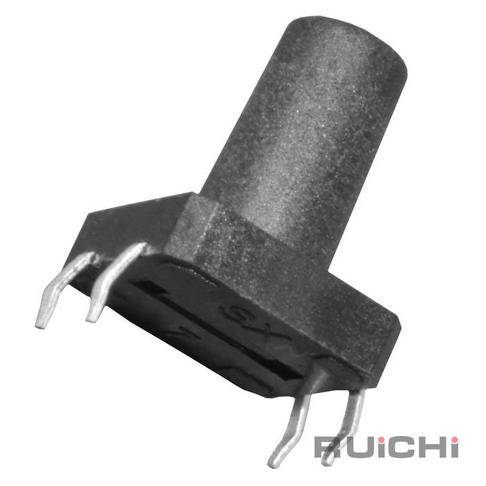Тактовая кнопка RUICHI KAN1211-1501B, 12x12x15 мм, OFF-(ON), 50 мА, 12 В, 100 мОм – это разновидность простейших механических выключателей, обеспечивающая замыкание контактов (без фиксации) только при наличии давления на поверхность штока (толкателя).