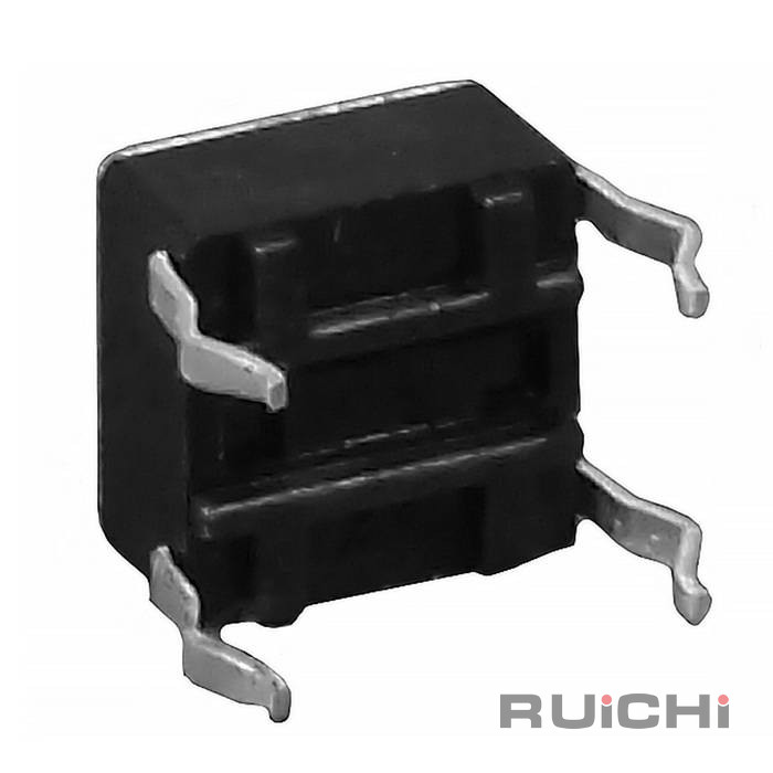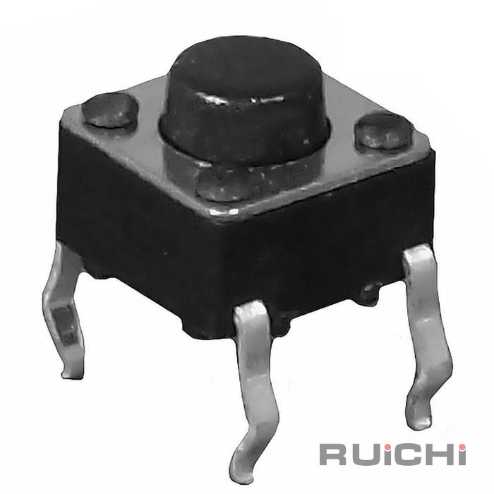Тактовая кнопка RUICHI KAN4511-0381B, 4.5x4.5x3.8 мм – это разновидность простейших механических выключателей, обеспечивающая замыкание контактов (без фиксации) только при наличии давления на поверхность штока (толкателя).