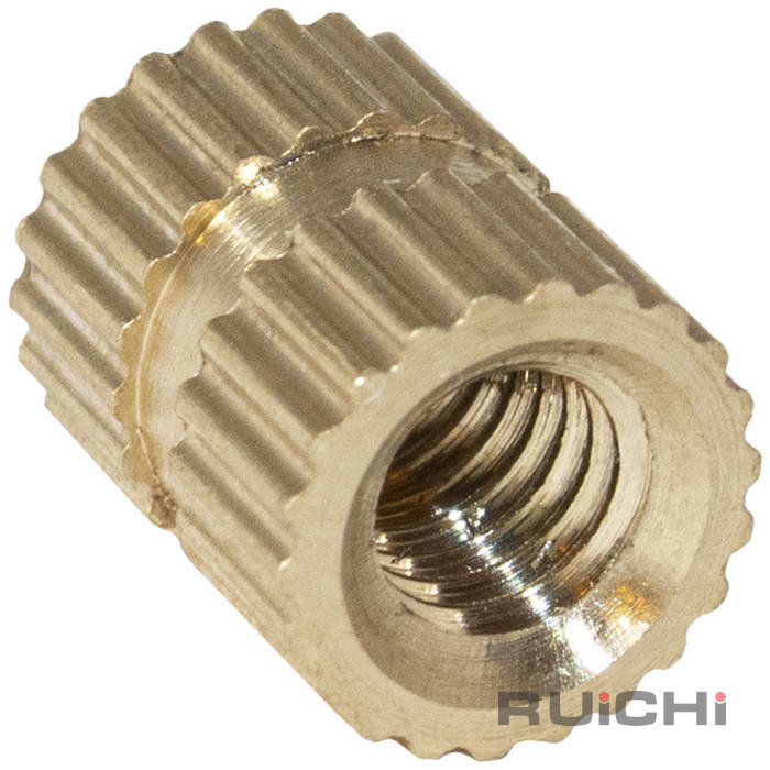 Втулка резьбовая глухая закладная RUICHI серии BLZB, резьба М6, диаметр 8.44 мм, латунь предназначена для заливки в пластиковые корпуса радиоаппаратуры в качестве крепежного элемента, которая обеспечивает более прочное винтовое соединение, чем саморезы. Втулки резьбовые закладные имеют негладкую боковую поверхность, которая препятствует проворачиванию, а также перемещению втулок вдоль оси при установке винта.