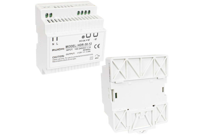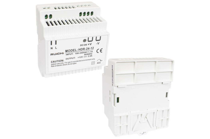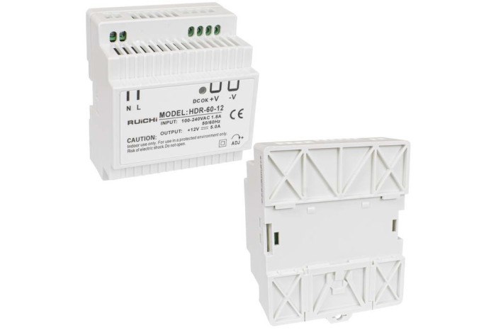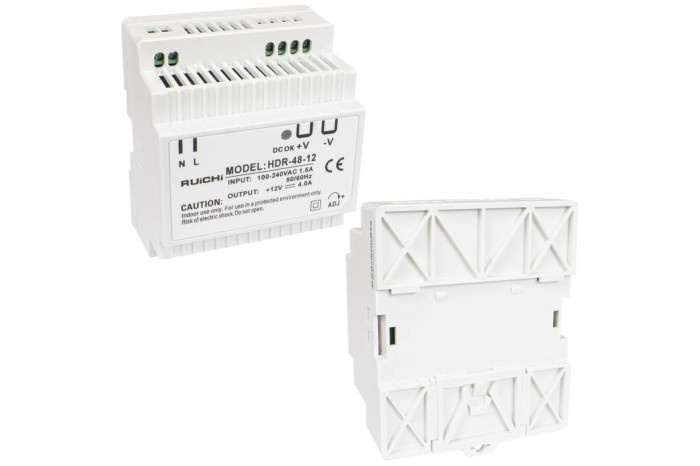 Расширили линейку блоков питания на DIN-рейку RUICHI. Она пополнилась четырьмя моделями серии HDR-12: HDR-24-12, HDR-30-12, HDR-48-12, HDR-60-12. Все новинки выполнены в узком пластиковом корпусе с пассивным охлаждением, что позволяет эффективно использовать место в щитах с высокой плотностью монтажа, включая герметичные боксы.
