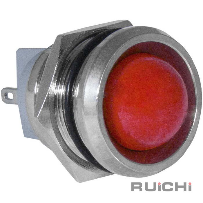Индикатор антивандальный RUICHI GQ16PR-R, цвет красный, точечный излучатель, 12-24 В, 15 мА, гибкие выводы, никелированная латунь - это источник света для демонстрации электрических процессов в приборах. Конструктивно представляет собой модуль индикации, оснащенный контактным блоком, к которому припаиваются или присоединяются проводники.