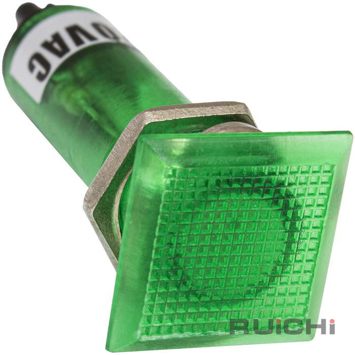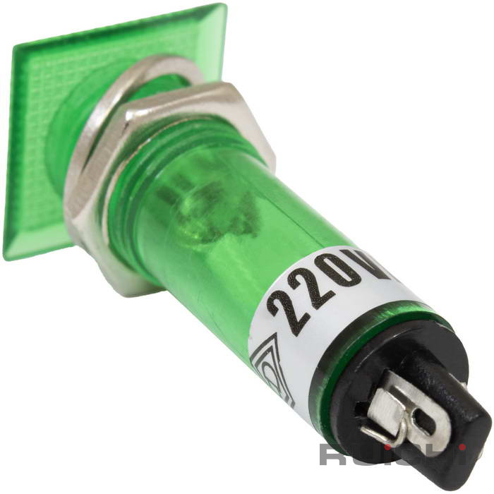 Лампочка неоновая в корпусе RUICHI N-826-G, 220 В, зелёная - это газоразрядная лампа, состоит из баллона, заполненного разреженным инертным газом (неоном), и укрепленных внутри баллона двух дисковых или цилиндрических электродов.