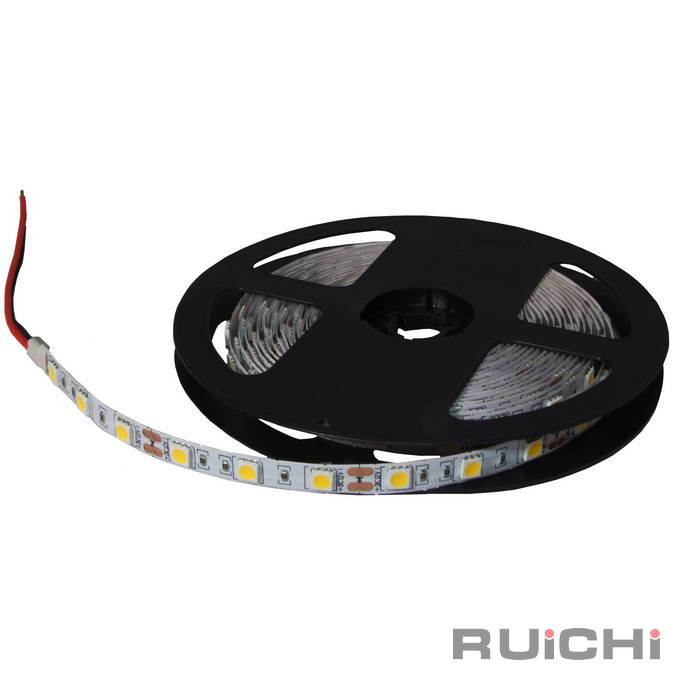 Светодиодная лента RUICHI, 5050, 300 LED, IP33, 12 В, цвет белый тёплый, катушка 5 м - это источник света, собранный на основе светодиодов. Представляет собой светодиодный модуль на гибкой печатной (монтажной) плате, на которой равноудалённо друг от друга расположены светодиоды.