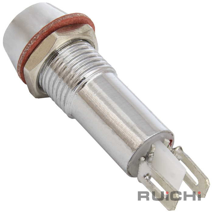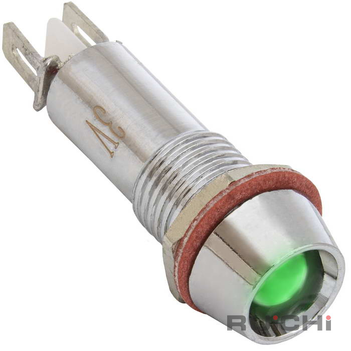 Индикатор светодиодный в корпусе RUICHI L-615-G, диаметр 8 мм, 3 В, -20 …+55 °C, срок службы 10000 часов, цвет светодиода зеленый, корпус металлический - это полупроводниковый прибор с электронно-дырочным переходом, создающий оптическое излучение при пропускании через него электрического тока в прямом направлении.