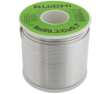 Припой оловянно-медный RUICHI, Sn 99.3%/Cu 0.7%, бессвинцовый, диаметр 1.5 мм, 50 г, с флюсом производится в виде проволоки различного диаметра. Используется в качестве присадочного материала для закрепления методом пайки нескольких металлических элементов из разных металлов.