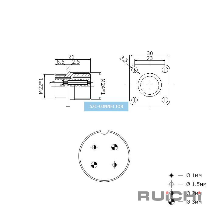 | Тип разъема: RM | Розетка блочная фланцевая - квадрат |