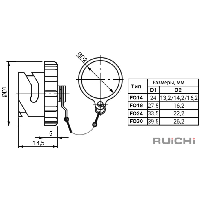 Заглушка кабельной части для быстроразъёмного разъёма RUICHI FQ30, с цепочкой, черная