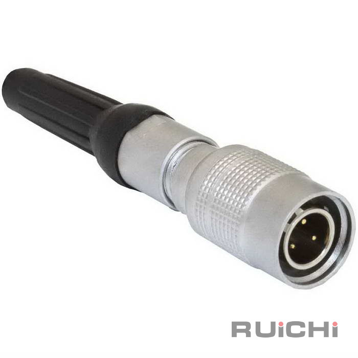 Быстроразъемный разъем Push-Pull вилка-розетка RUICHI SY1310/P-3P, двухтактный, IP67, 3 контакта, 250 В, 3.5 А, -55…+85 °С, 5 - 35 H успешно предотвращает случайное разъединение благодаря надежному самоблокирующемуся механизму, который позволяет соединить разъем, вставив вилку в розетку. Однако просто потянув за соединение, его нельзя разорвать.
