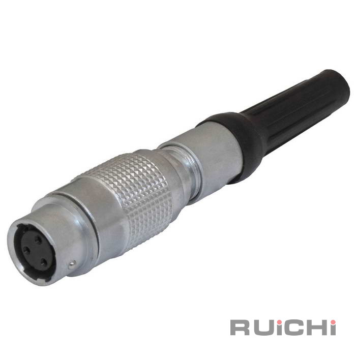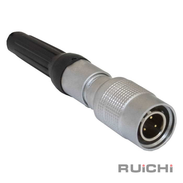 Быстроразъемный разъем Push-Pull вилка-розетка RUICHI SY1311/P-3P, двухтактный, IP67, 3 контакта, 250 В, 3.5 А, -55…+85 °С, 5 - 35 H успешно предотвращает случайное разъединение благодаря надежному самоблокирующемуся механизму, который позволяет соединить разъем, вставив вилку в розетку. Однако просто потянув за соединение, его нельзя разорвать.