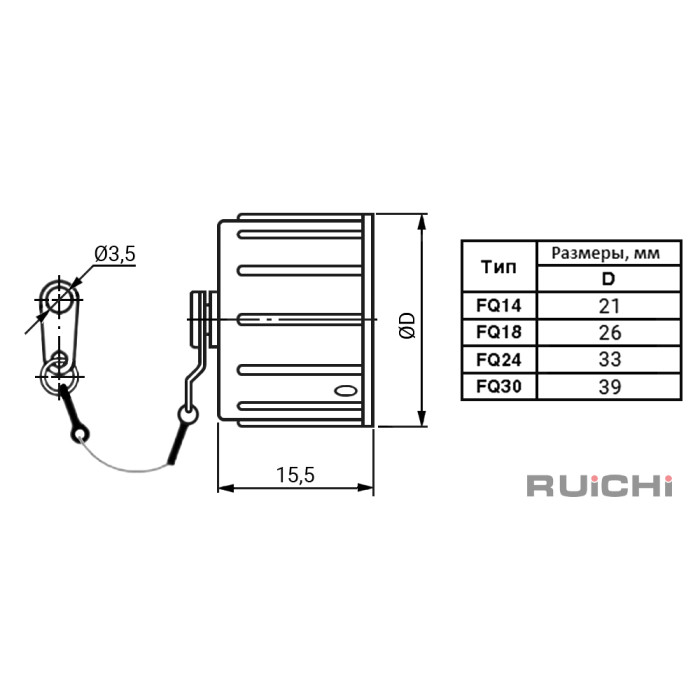 Заглушка блочной части RUICHI FQ18-Z-LID, пластиковая с резиновой прокладкой, пластиковая, предназначена для защиты разъема от пыли, влаги, грязи и других внешних воздействий, когда он не используется.