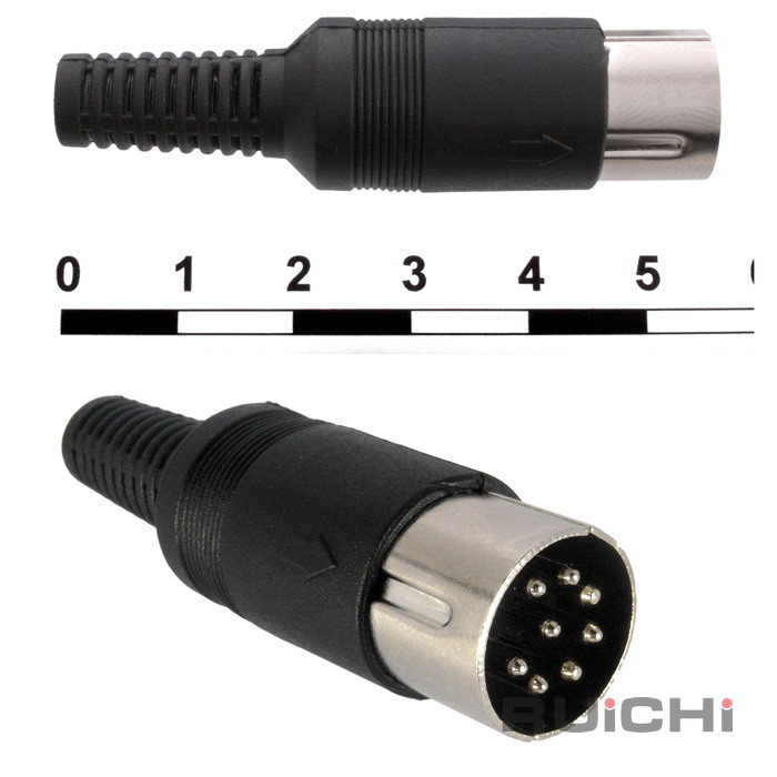 Разъем DIN - электрический разъем универсального типа и различной формы. Используются для передачи аналоговых звуковых сигналов (аудио), видео, коммутации цифровых интерфейсов, в частности PS-2 для подключения манипулятора-мыши к компьютерам, принтеров, модемов, клавиатур.