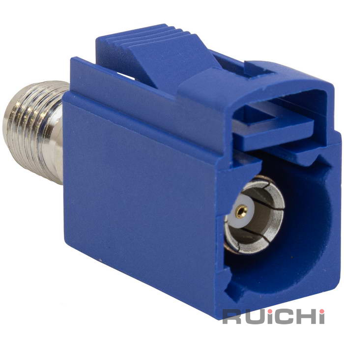 Высокочастотный разъем RUICHI серии FAKRA TYPE C-J (розетка)/SMA-P (розетка) для коммутации оборудования GPS/ГЛОНАСС, обжимной, на кабель RG174/RG316, 5000 МОм, -40…+105 °C, цвет корпуса синий (RAL 5005) используется для коммутации оборудования GPS и ГЛОНАСС в системах телематики и навигации. Высокочастотный коннектор имеет прямую конфигурацию и предназначен для установки на кабель RG-316 или RG-174 методом обжима. Обычно эти тонкие кабели используются для изготовления коротких соединительных адаптеров (пигтейлов), а также для коммутации оборудования на небольшом расстоянии.