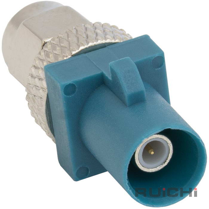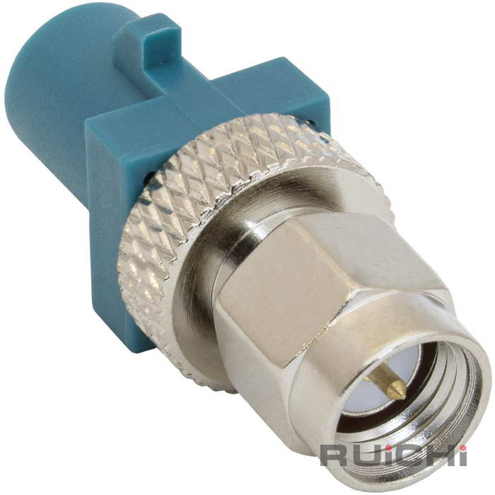 Высокочастотный разъем RUICHI серии FAKRA TYPE Z-P (вилка)/ SMA-P (вилка) для коммутации любого оборудования, обжимной, на кабель RG174/RG316, 5000 МОм, -40…+105 °C, цвет корпуса бирюзовый (RAL 5021)