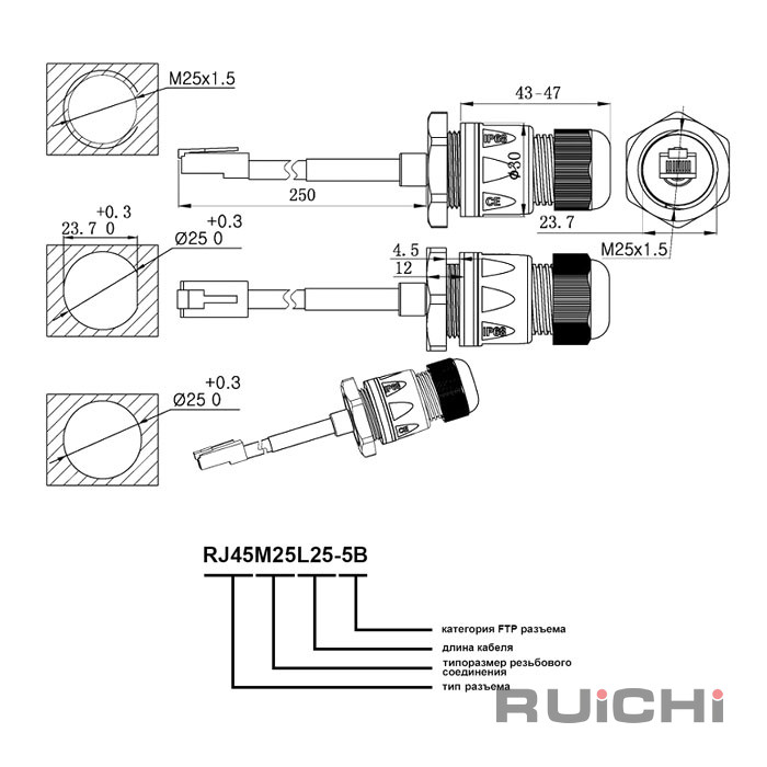 | Тип разъёма | RJ45 8P8C FTP герметичный |
