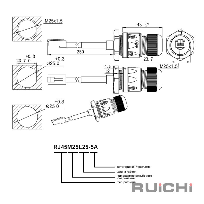 | Тип разъёма | RJ45 8P8C UTP герметичный |