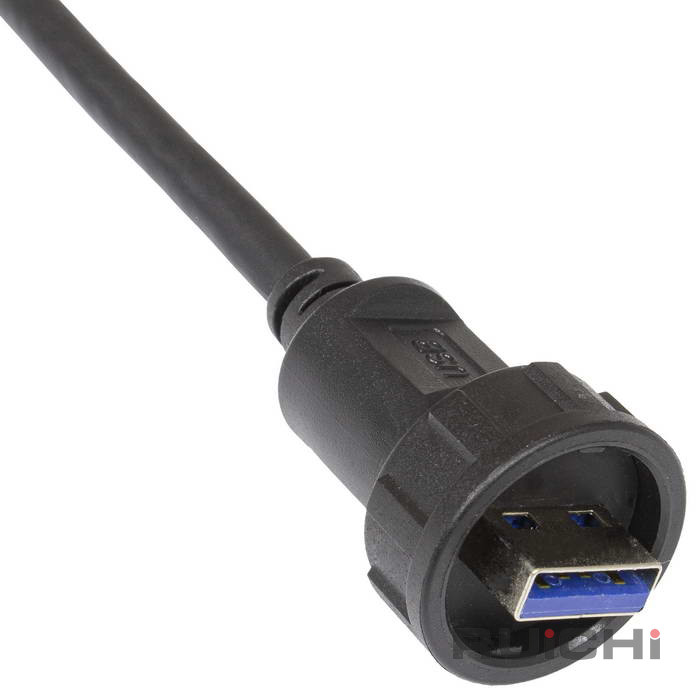 Герметичный разъем USB-3.0B-C-03, кабель-блок, IP67, корпус PA66 UL94V-0, черный, является пылезащищенным и влагозащищенным. Герметичный разъем соответствует высокой степени защиты, что гарантирует работу разъемов при длительном погружении в воду (более 30 минут) на глубину больше 1 м. Отличительной и главной особенностью является байонетное соединение, что делает монтаж быстрым и надежным. Такой тип соединения позволяет использовать разъемы в стесненных условиях.