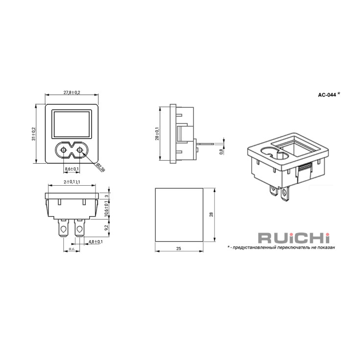| Тип | Вилка блочная 2-полюсная с выключателем |