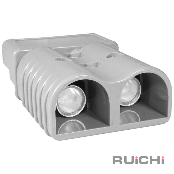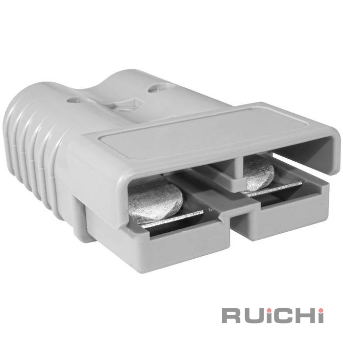 Силовой разъем RUICHI PS350, 350 А, 600 В, -20...+150 °C, корпус PC UL94 V-0 серый - это быстросъемный соединительный разъем, который монтируется на кабель сварочных аксессуаров (держатель электрода на проводе или зажим массы) для последующего надежного и простого соединения кабелей друг с другом с целью общего увеличения длины кабеля. Также может использоваться для подключения данного аксессуара к корпусу сварочного аппарата.