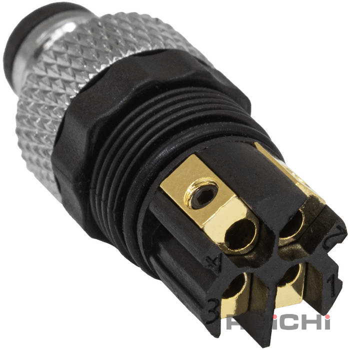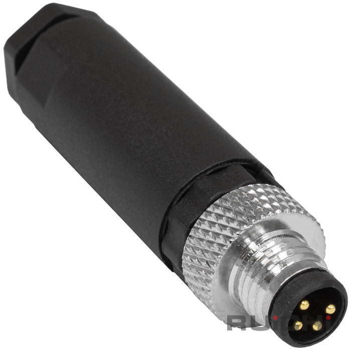 Разъем малогабаритный цилиндрический кабельный (вилка) RUICHI 8-I-4M-04A, М8х1 мм, 4 контакта, IP 67, 3 А, 50 В, -40...+85 °C представляет собой коннектор ручного соединения, внутреннего объемного монтажа. Он соединяет цепи с нагрузкой до 4 А и 50 В. Корпус соединителей изготовляется из цинка и никеля, а внутренний изолятор из бакелита. Разъемы являются пыле- и влагозащищенными и соответствуют степени защиты IP 67, что гарантирует работу в пыльной среде и допускает попадания воды.